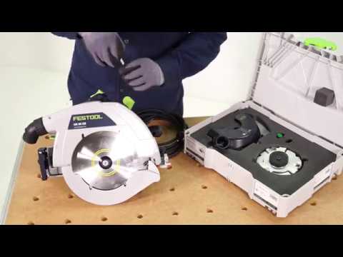 Ce dispositif de rainurage de la marque Festool permet de transformer la scie circulaire HK 85 en une fraiseuse à rainurer universelle (rainures transversales et longitudinales). Les bagues d'espacement permettent de régler la largeur de rainure souhaitée. Il est possible de raccorder la HK 85 avec un aspirateur pour un environnement de travail propre et sain.